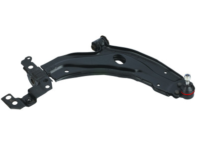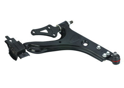 A suspension arm is configured for pivotable attachment to a vehicle’s frame and for at least partially supporting a wheel knuckle. The suspension arm includes first and second elongated support members which each have proximal and distal ends. The suspension arm also includes a bracket formed from sheet metal. The support arm is configured for pivotable attachment to a vehicle’s frame adjacent to the proximal ends of the first and second elongated support members. The distal ends of the first and second elongated support members are attached to the bracket. The bracket defines an opening configured for receiving a wheel knuckle. A pair of suspension arms and a vehicle having first and second suspension arms are also provided.